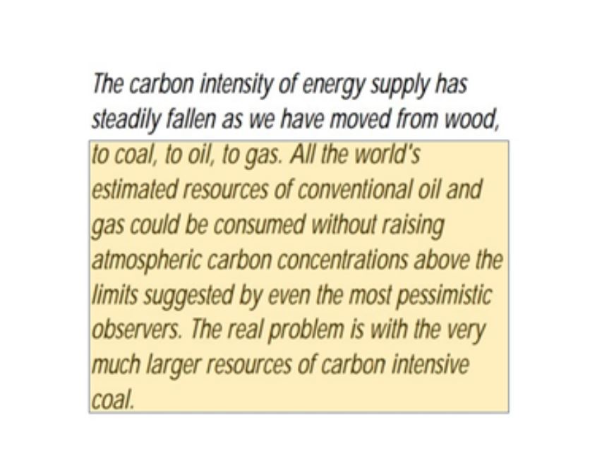 Shell claimed that “all the world’s estimated resources of conventional oil and gas could be consumed without raising atmospheric carbon concentration above the limits suggested by even the most pessimistic observers”.