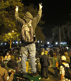 According to Oakland officials, the justification for this eight-hour-long explosion of force was that the area being occupied by protesters had become unsanitary, and that people were being raped within the camp zone. This was news to those who had been peacefully occupying the space in front of Oakland's city hall. It sounded suspiciously familiar to some last-decade claims about weapons of mass destruction being justification for a different burst of violence, and smells just as bad. The extreme nature of this police action might have had more to do with the fact that the protester's camp was unofficially named Oscar Grant Plaza, after the unarmed citizen who was murdered in 2009 by BART transit police, an incident that was caught on camera and broadcast to the world. Maybe the Oakland police did not like the reminder, and so swung their truncheons with an excess of vigor.