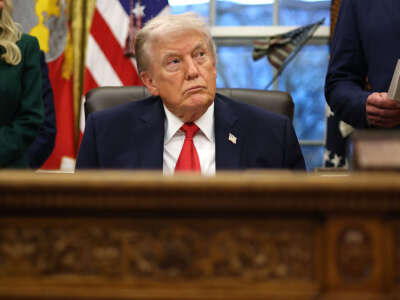 U.S. President Donald Trump looks on in the Oval Office at the White House on January 29, 2026, in Washington, D.C.